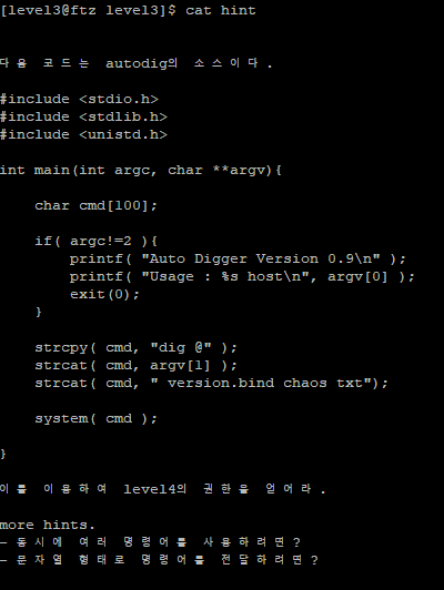 이번에는 해커스쿨 FTZ의 Level 3를 풀어보겠습니다.