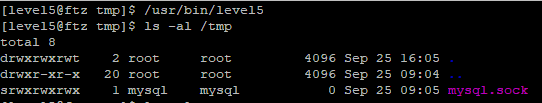 하지만 level5 프로그램을 실행하고 tmp 디렉토리를 봐도 임시파일이 존재하지 않았습니다.