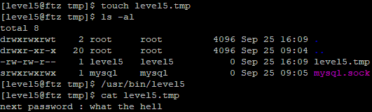 touch 명령어로 level5.tmp 파일을 만들어 주고 level5 프로그램을 실행하니 password를 확인할 수 있습니다.
